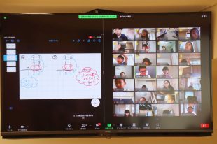 5年松組の数学では少数と分数の学習。教室での授業と変わらず、自分たちの考えを次々と発表する子どもたち。オンラインでも変わらない授業への集中力はさすが高学年です。画面越しに、いつも以上に子どもたちの様子に気を配る先生。