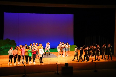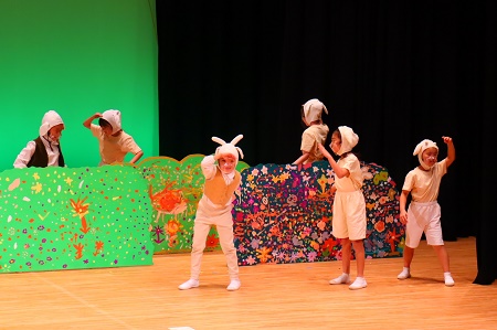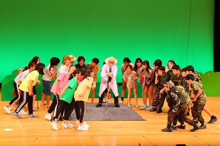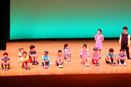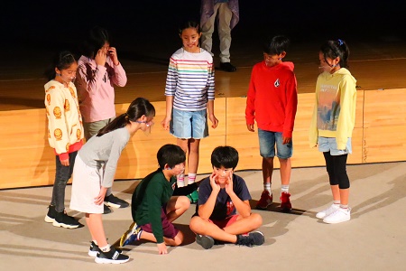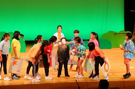 リレーで転んでしまった、テストで悪い点を取ってしまった、友だちといつもケンカになってしまう、みんなの前でうまく話せない…。色々な悩みを抱えた子どもたちの前に現れた「ペキカン星」の人々。ペキカン星ではあらゆる失敗から解放されたカンペキな自分になれると聞いて行ってみることにします。テストは満点、かけっこはみんなで完走。失敗なくカンペキに過ごせるのになぜかしっくりこない子どもたち。心がもやもやすっきりしない子どもたちは失敗した自分たちの姿を振り返ってある失われてしまったものを見つけて大切なことに気づきます。桐組が自分たちの言葉を寄せ集めて作ったオリジナルの曲が最後に披露されました。クラスの仲間を想う桐組みんなの気持ちがこめられた素敵な歌声に包まれました。