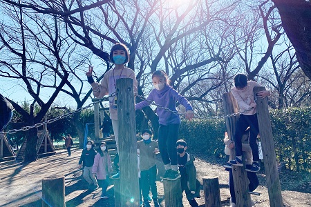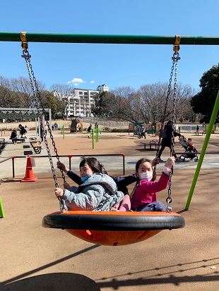 砧公園では、おにごっこをしたり、だるまさんがころんだをしたり、フリスビーをして時間を忘れてしまうくらい夢中で遊びました