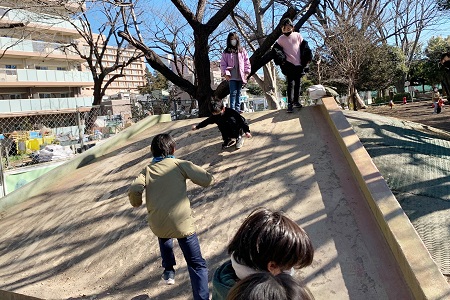 この日は快晴!外遊びをする子どもたちも気持ち良さそうです。写真は2年櫟組の子どもたち
