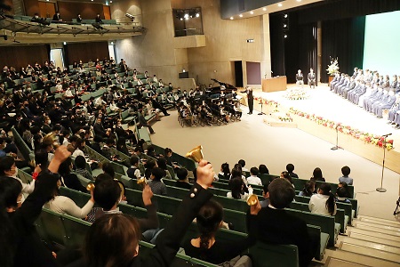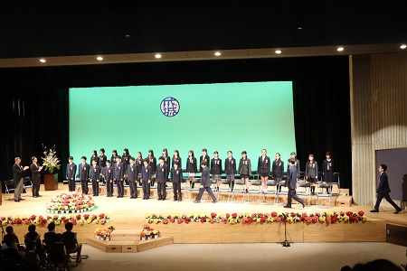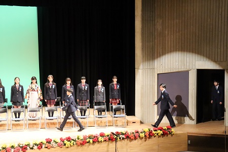 在校生、保護者、先生たちの大きな手拍子とともに卒業生が颯爽と壇上に登場しました