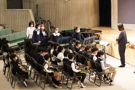 在校生にとって6年生と一緒に過ごせる最後の時間。「6年生へのありがとうの気持ちがこもった式になるように全力でがんばろう!」と高橋副校長の言葉に「はい!」と元気に答えた在校生。すばらしい合奏の演奏を卒業生に贈りました