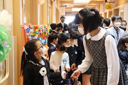 新入生一人一人に寄り添い、サポートに徹した6年生。新入生の気持ちをほぐそうと絶えず言葉をかけていました。とても頼りになる素敵なお兄さん、お姉さんたちです