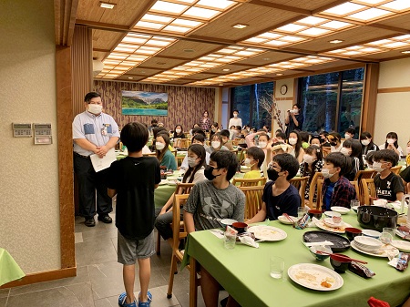 夕方に休暇村に到着。夜のミーティングでは翌日の剣ヶ峰のガイドさんから山だけではなく、自然の雄大さ幽玄さについて語っていただき水の大切さを学びました。