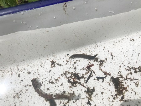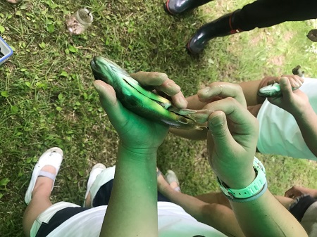 ネイチャートレッキング:川の中に入り、小さな虫を探す活動をしました。