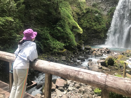 乗鞍高原散策:宿舎から歩いて10分のところにある善五郎の滝まで散策。