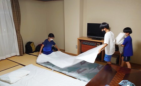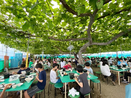 4日目、「お世話になった宿舎を来た時よりも美しく、次の人が使いやすく」をテーマに片付け。途中、山梨県のぶどう園でお昼を食べ、帰途につきました。