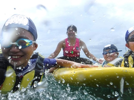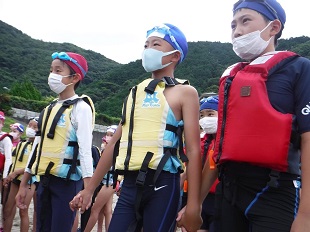 いのちの教育:メインプログラムはライフジャケット遠泳。バディと1時間の遠泳に挑戦しやり遂げました。