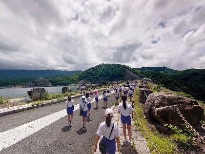 2日目、爽やかな風を浴びながら体操をし、ならまたダムの堤体ウォークへ。