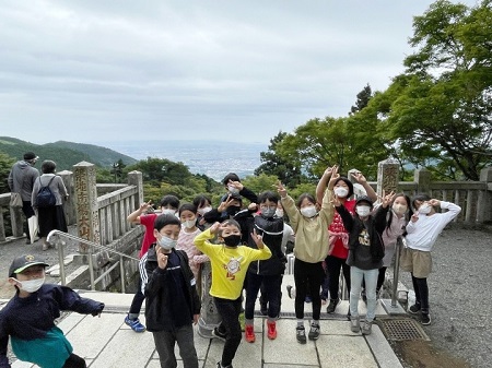 例年は、ケーブルカーを利用していますが、今年は自分たちの足で山頂まで登り切りました。登頂した後に食べる昼食は格別でした。