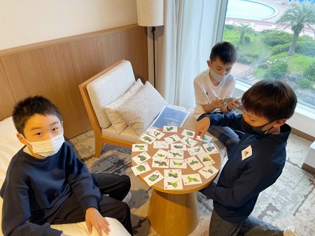 美味しい夕食を堪能し、部屋ではカードゲームなど思い思いの時間を過ごすことで1日の疲れを労わりました。