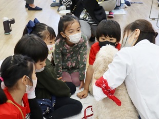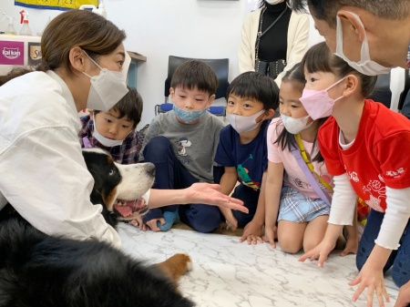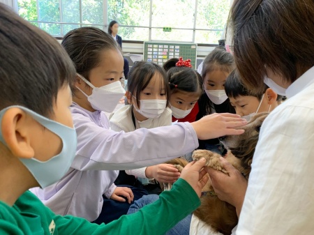 1年桧組は、犬を観察したり、触ったりして犬と触れ合い、仲良くなるコツを学びました。