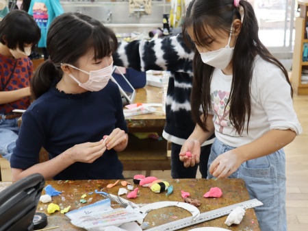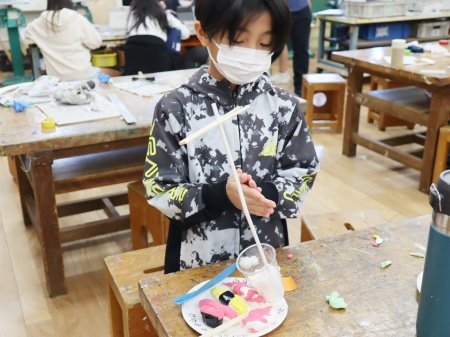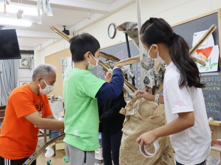 文化祭で担ぐおみこしの制作を進めるクラスも。写真は3年桜組と4年柚組