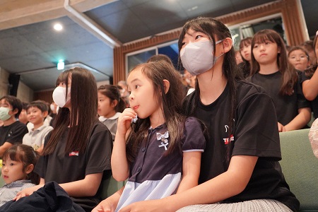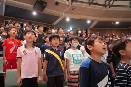 6月9日(金)に児童対象、10日(土)に保護者対象の音楽の会が初等学校講堂で行われました。今回の音楽の会は、1、2、3年生は学年全体で斉唱、4年生はクラスごとに歌や楽器の演奏、5・6年生はクラスでミニキーボード合奏、さらに6年生は学年合唱、全校児童による全校合唱と盛りだくさんのプログラムで実施しました。コロナ禍では教室へ動画配信したりグループ別に行ったりしていた音楽の会。全校児童が講堂に一堂に会し、開催できるのは2019年12月以来実に3年半ぶり。そして何よりも今回は全校合唱が復活しました。