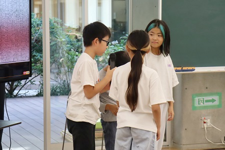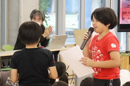 とても地震が多い国である日本。はじめに斉田さんから震度や地震速報についての説明があり、地震が起きたときにまず何をすべきかについて一緒に考えました。また、関東大震災や東日本大震災を例に、台風や大雨によって被害が拡大した火災や土砂災害、原発事故といった複合災害についてのお話しがあり、地震は揺れて終わりではないことを学びました。児童からは「自分で身を守るために、地震が起きたらどうしたらいいか考えておかないといけないと思った」等の感想がありました。