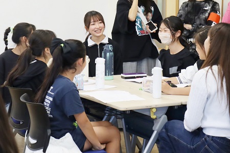 その後は、男女4つのグループに分かれて質問をしました。テスト勉強の仕方や、新しい友達と仲良くなる方法など、さらに詳しく先輩に話を聞いたことで、中学校へのイメージが具体的になったようです。