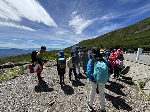 3日目は6年夏の学校の一大イベントでもある「剣ヶ峰登山」の日です。いいお天気に恵まれ、過ごしやすい気候の中、登山ができました。初めて登山を経験する子も多く、ドキドキしながら参加する子もいました。頂上から見える景色は、本当に綺麗で、最後まで頑張った達成感も感じることができました。