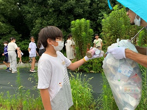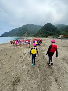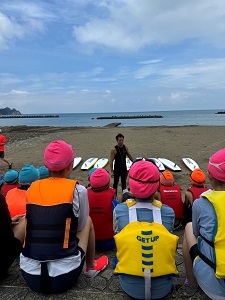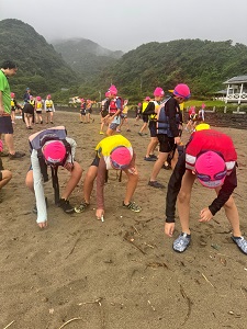 1日目はライフジャケットのサイズ合わせを行ったうえで、海で自由遊泳とビーチクリーン活動を行いました。雨が降る中でしたが、海に入ってしまえば関係なし!みんなで大いにはしゃぎ回りました。爽快な表情が印象的でした。