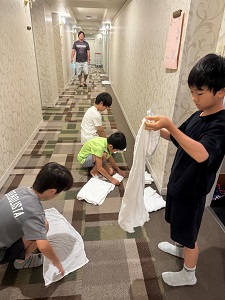 夜はクラスの時間をみんなで過ごして、消灯を迎えましたが、まだ興奮気味の子どもたちもいました!しっかり休んで明日も元気に活動しようね!
