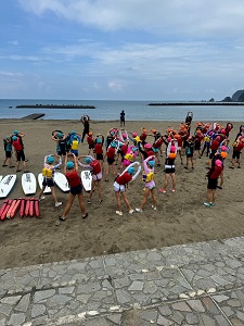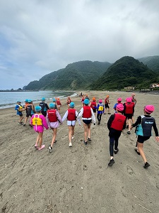 中には疲れや不安から、途中で泣き出してしまう子もいましたが、「大丈夫だよ、安心して」「ここまで泳いでこれたからきっとできるよ」といったバディの温かい励ましによって、誰も浜に上がることなく泳ぎ切ることができました!
