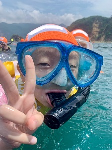 2日目は、全体を2つのチームに分けて、それぞれのプログラムを行います。3日目は活動を入れ替えて、前日に体験していないプログラムに取り組みます。先にシュノーケリングチームの活動について紹介します。