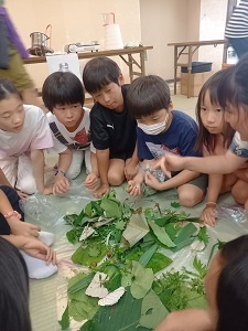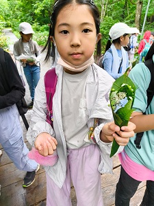 「クマイチゴと 笹の葉をえらびました。クマイチゴはいいにおいで、笹の葉は和の匂いがするからえらびました」「私たちの班はレモンとハーブティーに似た匂いがします」「酸っぱさと草っぽさがあって、バジルというかマルゲリータみたいな匂いがするよ」など、様々な感想がありました。明日はレイクラフティングです。