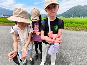 宿を出た後は、たくみの里を散策して里山の美しさに触れました。お昼ご飯を食べた後、無事に学校まで帰ってきました。
