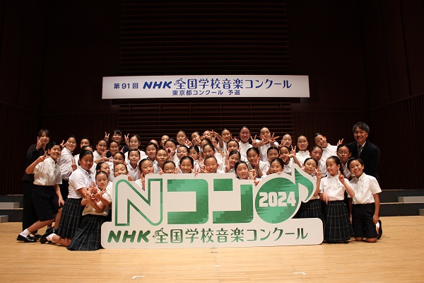初等学校合唱部が8月1日にJ:COMホール八王子大ホールで行われた第91回NHK全国学校音楽コンクール小学校の部東京都予選Bに出場し、金賞を受賞しました。 そして8月9日に文京シビックホールで行われる第91回NHK全国学校音楽コンクール小学校の部東京都本選(都大会)に出場することが決まりました。応援よろしくお願いします!