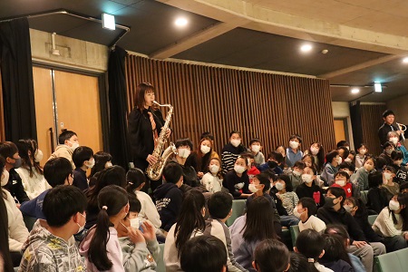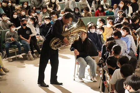最後にトロンボーン奏者の苅米博之さんは「僕たちは音楽に出会って、人には負けないぞという気持ちでたくさん練習してきました。みんなも何でも好きなこと、人には負けないと思えるものを探してみてください。大きな夢を持ってください。成長した皆さんとまた会える日を楽しみにしています!」と話し、子どもたちにエールを贈ってくれました。見て、聴いて、参加して楽しむ貴重な「ジャズ体験」の時間になりました。