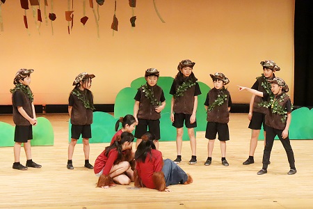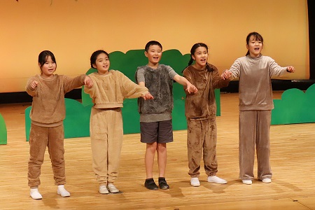 桜組児童による創作劇は次々と展開するシーンやクスっと笑ってしまうような楽しい演出がたくさんありました。クラス全員で素敵な劇を上演してくれました。