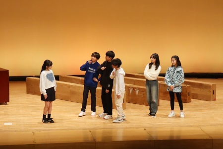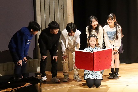 卒業を間近に控えた6年生のあるクラスでは、アルバムを見返して小学校時代の様々な行事を振り返っていました。それぞれの写真にたくさんの思い出がつまったアルバムを見ていると、いつも元気なしょうたと、いつも真面目なともかがある時を境に元気をなくしていることに気が付きました。笑顔の消えた2人を心配するクラスメイトたち。原因は自分たちにあるのでは?と思い2人に謝りに行きますが…。まさに卒業を控えた欅組の子どもたちの将来への不安や期待の気持ちが映し出されたようなストーリーを6年生らしい表現力で演じてくれました。卒業生たちのその後を表現した最後のシーンで温かくほっこりした気持ちにさせてもらえるとても素敵な劇でした。