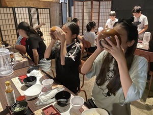 初日には江戸から続く伝統ある石井味噌での昼食を楽しみ、天然仕込みの味噌についても学びました。午後には宿舎に到着、代表の児童たちによるスピーチとともに開校式が行われ、一体感と新たな挑戦への期待感が広がる瞬間となりました。