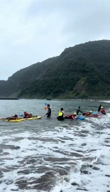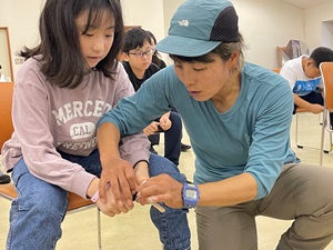 命の教育では、バディ(ペア)を組んで、実際に海や川で流されてしまったときにどう行動すればよいかを体験的に学びました。水に浮かぶ方法を試したり、ライフジャケットを水中で脱ぐ練習など、命を守る術を真剣に学ぶ姿が印象的でした。