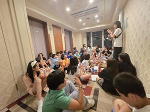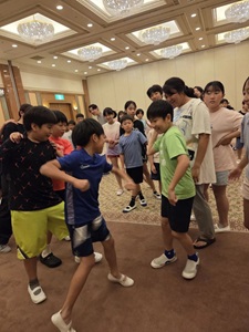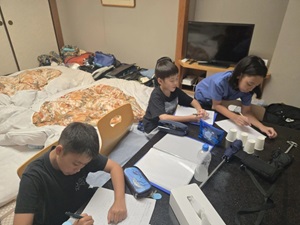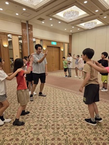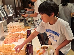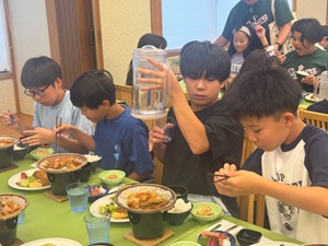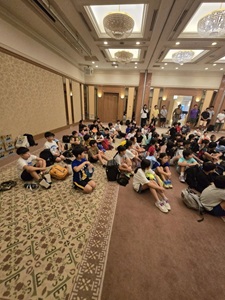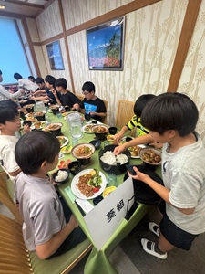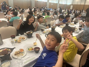 ホテルに戻ってからは、開校式を行いました。施設の方にご挨拶をし、スタッフの紹介や避難経路の確認など、安全に活動を進めるための大切な話を聞きました。子どもたちは姿勢よく、集中して話を聞いており、とても立派でした。この合宿に対する期待とやる気が、表情や態度からよく伝わってきました。