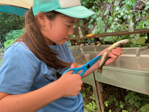 「命をいただく」岩魚を捕まえ、自分たちでしめて捌いて食べました。食べ物は命をいただいているということに、改めて気づきました。