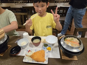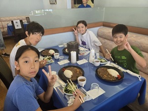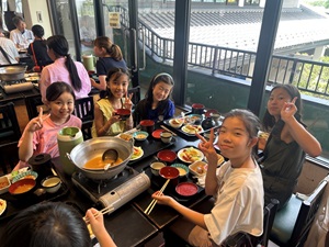 夏の学校最終日。お天気に恵まれ、朝の澄んだ空気の中で閉校式を行うことができました。5日間にわたってお世話になった皆さまに、感謝の気持ちを込めてご挨拶をし、お礼の歌を心を込めて歌いました。式の後には、お世話になった方のもとへ駆け寄り、笑顔で手を振ったり、ぎゅっと抱きついたりする子どもたちの姿が見られ、温かな別れのひとときとなりました。長いバス移動を経て、昼食は「おぎのや」でいただきました。思い出話に花を咲かせながら、おいしいごはんをいただきました。