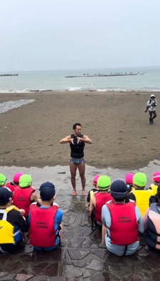 3日目は、「ライフジャケット遠泳」と「海とプールでの自由遊び」の2つの活動を行いました。
