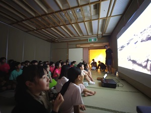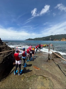 1日目は、堂ヶ島(トンボロ)での磯遊び、開校式、そして夜の海の観察という順序で活動を行いました。