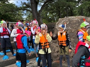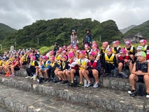 4日目は、海の自然や仲間とのふれ合いをたっぷり感じることができる一日でした。活動内容は「黄金岬散策」「シュノーケリング」「お楽しみ会」の3つでした。