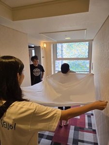 「荷物整理」では、これまでの宿泊生活で使用してきた布団を丁寧に畳み、シーツを外してまとめる作業を行いました。それぞれが自分の荷物をきちんと整理する姿が見られ、5日間の生活の中で身につけた自立心や整理整頓の力が感じられました。また、自分のことだけでなく、「手伝おうか?」「一緒に片づけよう!」といった声をかけ合いながら、お友だちの荷物整理を手伝う優しさや協力の姿勢も見られました。