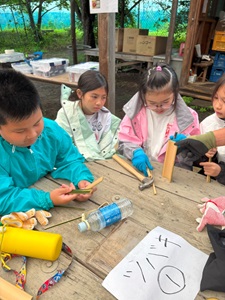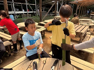 櫟組は、初日に行った竹細工の発展として、自分たちのアイデアを形にするものづくり。