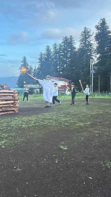 そして夜は、待ちに待ったキャンプファイヤー!山賊が登場したり、火の神が現れたり…みんなで一体となって楽しむ特別な時間となりました。