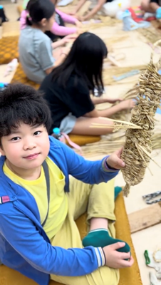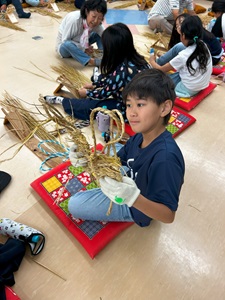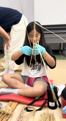 椿組は、昔ながらの技法で取り組む藁細工体験。