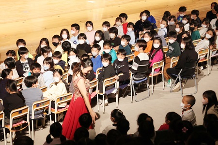 素敵なハーモニーに加えて、コミカルな動きや豊かな表情で楽しく音楽が表現され、子どもたちも終始笑顔で鑑賞していました。生の歌声でオペラを体験することができる貴重な機会となりました。