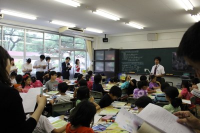 数学、社会、理科、英語、美術の公開授業と、それぞれの授業や教育法について参加者が意見交換する協議会を実施。参加者は時に児童に質問するなど非常に熱心に授業を見学し、活発な意見交換が行われました。