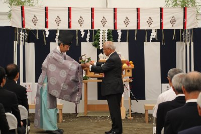 7月2日(月)、初等学校の新校舎新築にあたり地鎮祭が行われました。当日は真っ青な空が広がる快晴。喜多見氷川神社から斎主をお迎えし、学園・工事関係者約130人が出席して工事の無事と安全、初等学校の繁栄を祈願しました。来年の完成へ向けて本格的な工事に入ります。