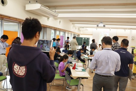 10月23日(水)に行われた研究会では、4年生の1クラスを対象とし、美術(工芸)と理科を2コマ続きで授業を実施。工芸では発泡スチロールのトレイを使い、うちわで扇いで進む船などを制作し、次の理科の時間では、工芸で作った作品をうまく進ませるためにはどうしたらよいか、「風力」をテーマに授業を行いました。工芸と理科、関連性のないように見える教科の間につながりを持たせることによって、子どもたちの取り組み方がどう変わっていくかということを研究しました。