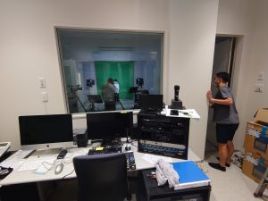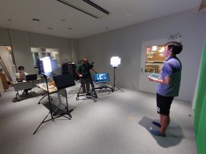 写真は、ライブ配信を行った映像のへや、スタジオでのリハーサル・本番の舞台裏の様子です。スタジオには本格的な機材を取り揃えており、子どもたちが映像表現を学ぶため授業で使っています。