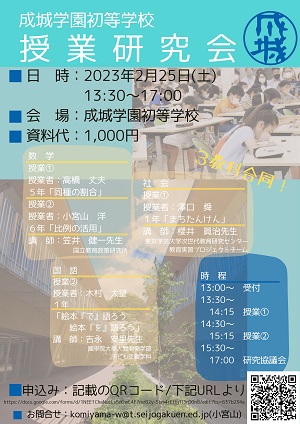成城学園初等学校 授業研究会を下記のとおり開催いたします。