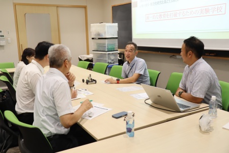 贈呈式終了後、理科部の岡崎先生と高橋副校長が日産財団の取材を受けました。成城学園初等学校の特徴的な教育実践や今回の研究について、この取り組みを経て児童、教員にどのような成果が得られたかなどについて答えています。このインタビュー内容は後日、日産財団のウェブサイトに掲載される予定です。